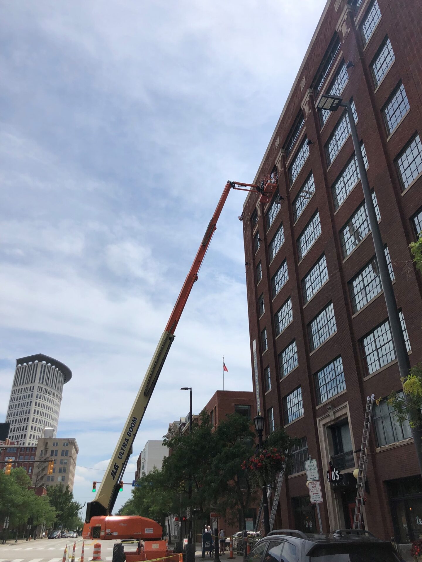 This extensive restoration, conducted for Landmark Management, involved meticulous tuckpointing and commercial caulking to maintain the structural integrity and historical charm of the building. The project began with remortaring the 10th-floor clay cap, followed by the use of cranes to deliver equipment to the 11th and 13th floors. Our team made significant progress remortaring the roof clay cap and sandstone to address inspection infractions. Additionally, we undertook mortar and re-bricking work in the north building alley and performed industrial metal window caulking and painting on the building’s north side.